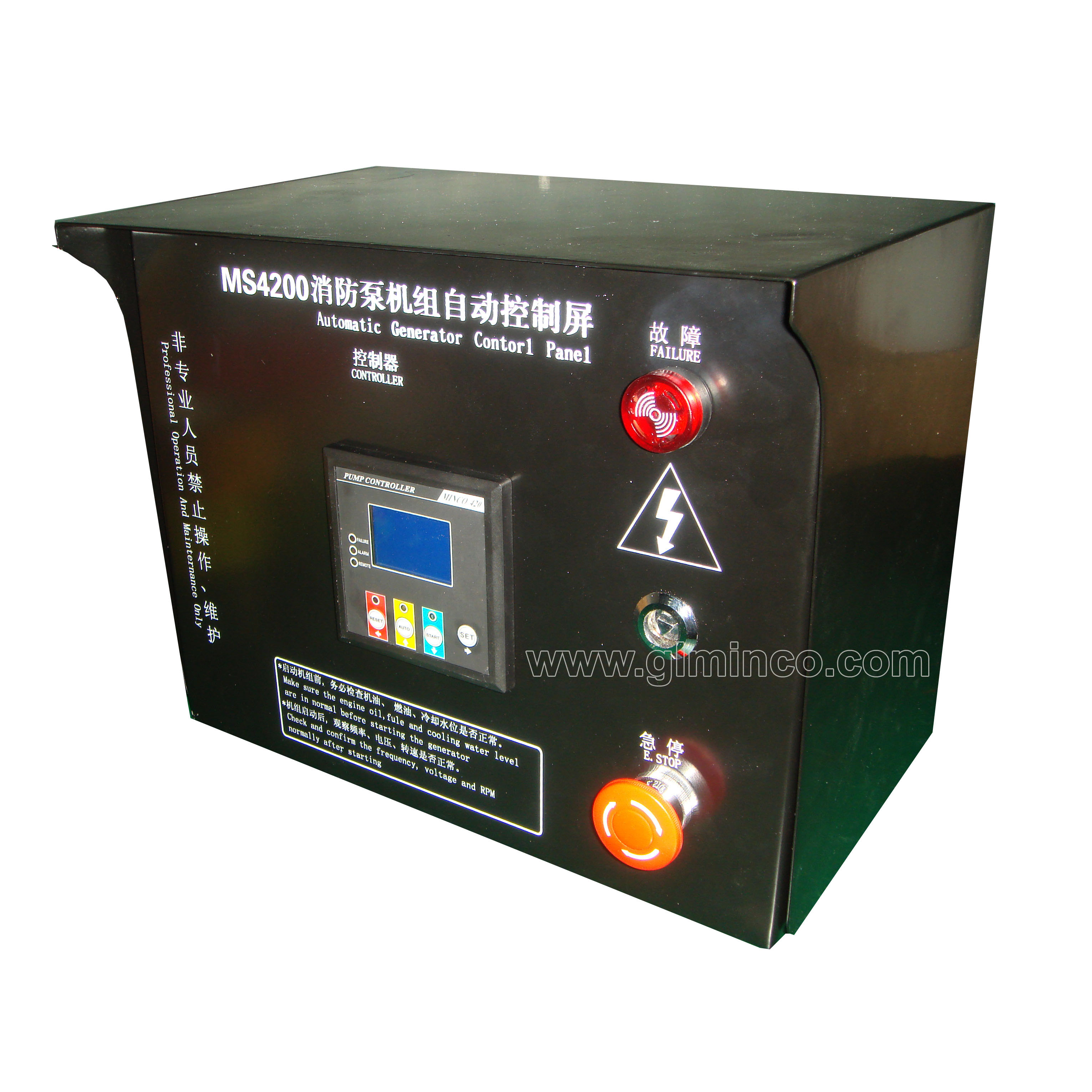 S4200控制屏可与各类型柴油发动机驱动的水泵配套,组成自动化智能化的水泵机组。该屏的控制系统以智能控制器Minco 420为控制核心,具有完备的发动机监测控制功能、自动化设置功能及自动保护功能。系统采用大屏幕液晶中文菜单显示,人机界面清晰、操作简便。系统预留有手动应急操作配置,以确保操控的可靠性。